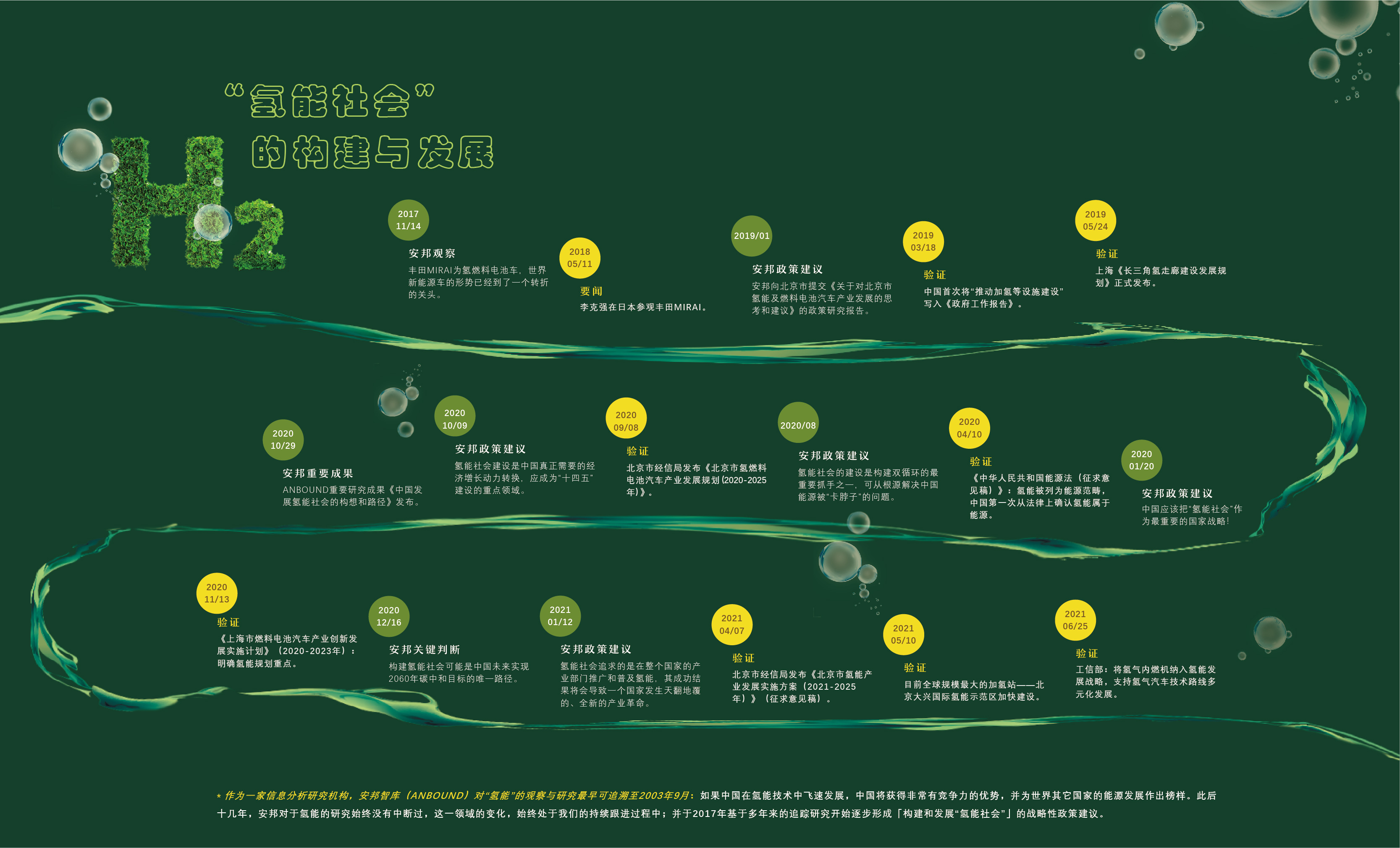2020年10月,安邦智库(ANBOUND)对外正式发布了《中国发展氢能社会的构想和路径》,报告中明确阐述了中国发展“氢能社会”对中国能源安全保障的重大意义。同时也指出,随着“氢能社会”的发展,由传统