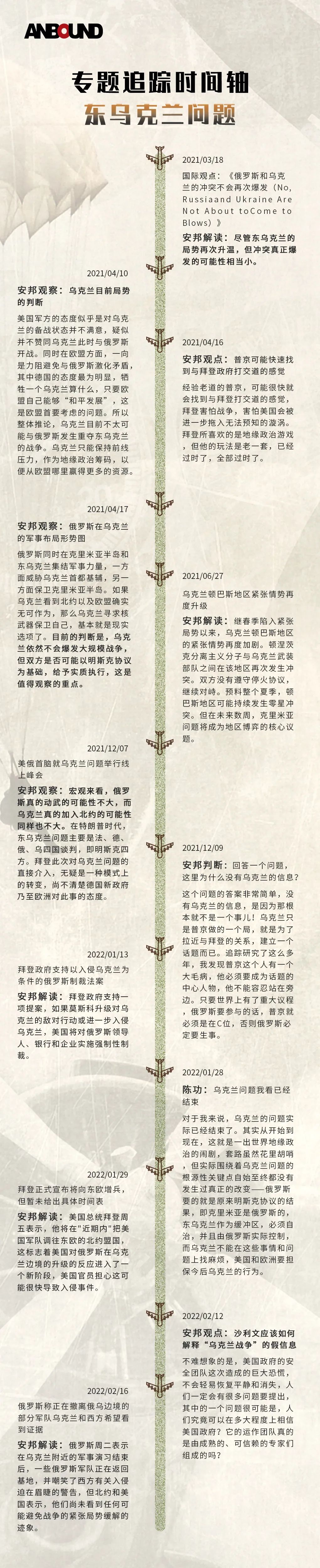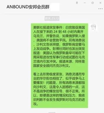 关注乌克兰危机的大批安邦智库的客户,立即涌现咨询局势演变的要求,询问安邦智库的判断和预测,战争是否会在24-48小时之内爆发?事实上,在1个月以前,安邦智库对地缘局势的推导,还曾经得出过一个清晰结论,虽然紧张局势依然存在,俄罗斯军队依旧部署在边界,但俄罗斯-乌克兰的战争危机已经在事实上结束了。所以,2月11日沙利文的警告讲话,对于安邦智库构成了巨大的压力。