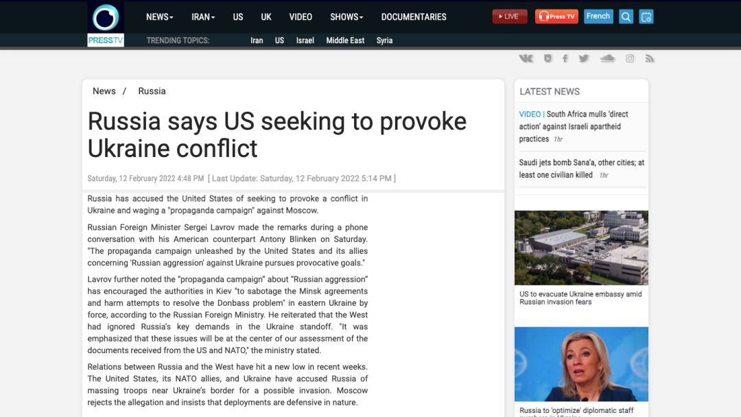实际上可以参照阅读的新闻,还有很多。在拜登与普京通话之前,莫斯科就已经非常努力的发动了全面的信息反馈,向全世界解释,完全没有发动战争的事情。一个最常见的解释就是,全世界都在叫喊,俄罗斯要对乌克兰发动战争了,只有俄罗斯和乌克兰除外!在2月12日的早些时候,莫斯科克林姆林宫更是强调,这仅仅是美国发动的一场“宣传运动”。据说,乌克兰总统要求,美国政府提供俄罗斯即将发动战争的证据,而美国政府已经拒绝。