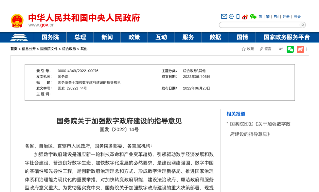 图 | 国务院印发《关于加强数字政府建设的指导意见》
