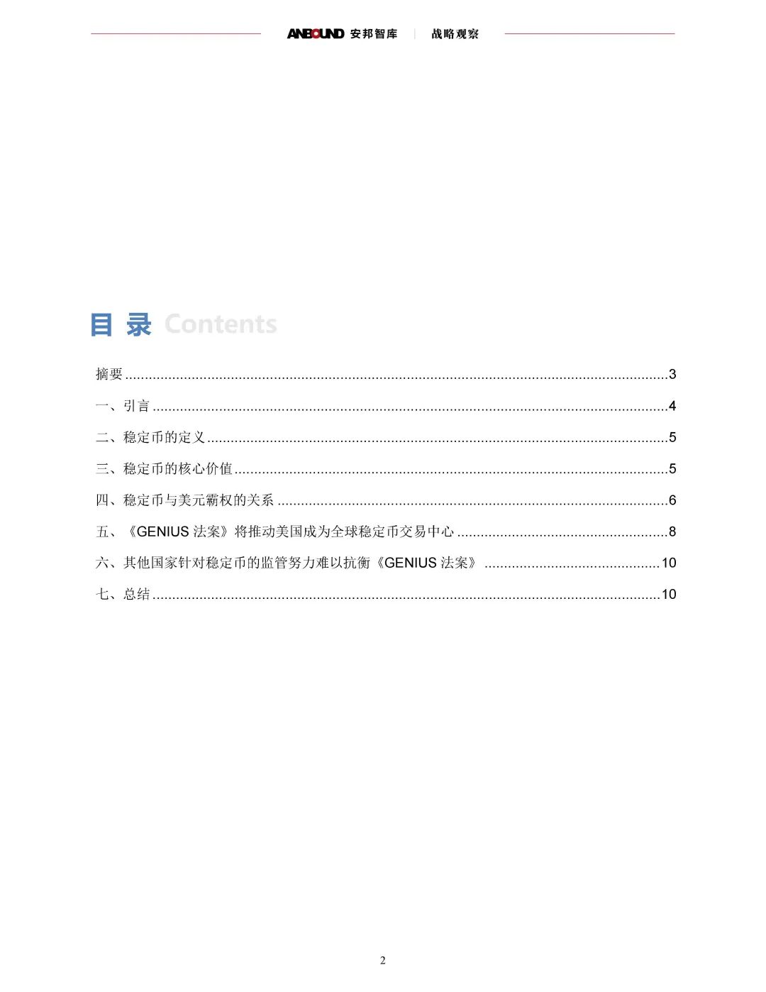 《GENIUS 法案》本质上是数字货币时代国际铸币权争夺的重要工具。美国凭借在美元稳定币领域的垄断地位与先发优势,试图通过制度化手段延续其金融霸权。短期内,其他国家和地区较难抗衡这一战略布局,全球金融体系或将由此步入以“稳定币美元”为核心的全新发展阶段。